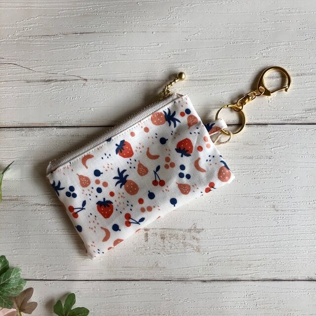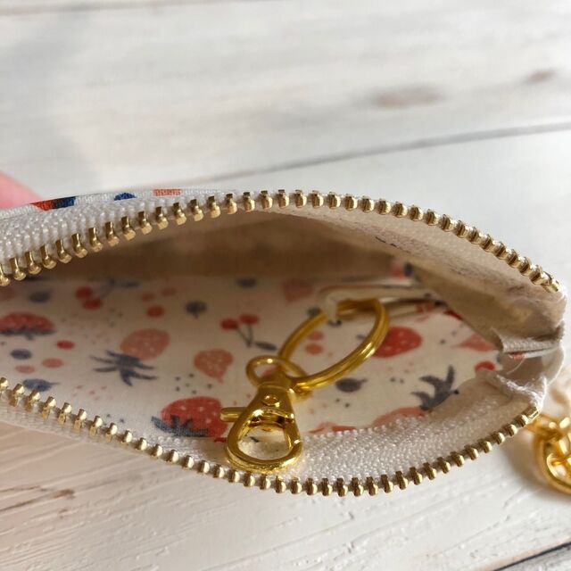 ポーチの外側にはダブルリングとキーホルダーをつけました。